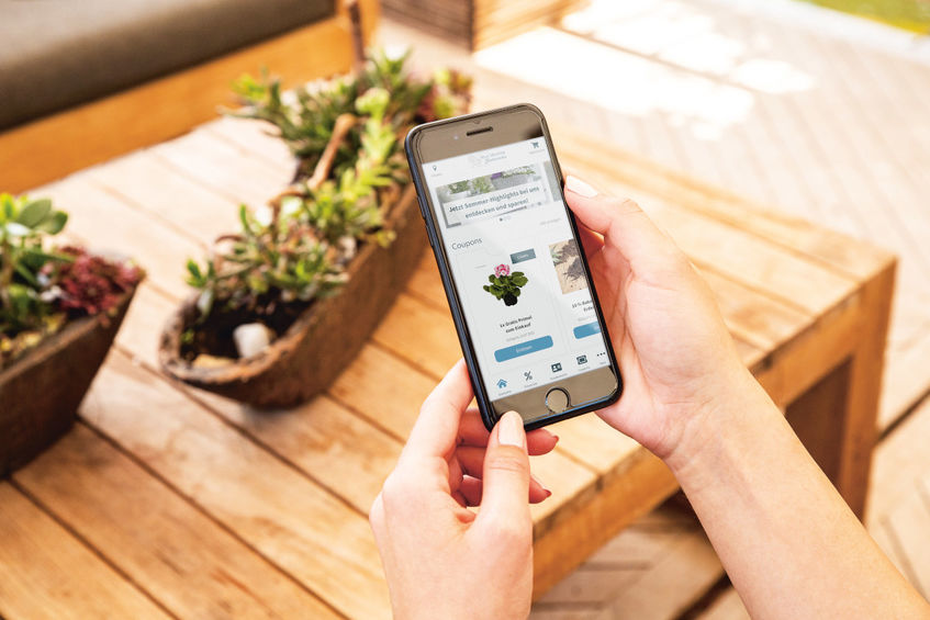 Relevante Informationen für Endverbraucher sind individualisierte Angebote oder Rabatte. Das kann beispielsweise nach dem Einkauf das Senden einer Push-Nachricht mit dem Hinweis auf Cross-Produkte sein: „Unsere Lösung ermöglicht es den Gartencentern, nach dem stationären Kauf einer Zimmerpflanze den Kunden automatisch auf Zimmerpflanzen-Dünger im Webshop hinzuweisen“, unterstreicht Kelm. Darüber hinaus lassen sich noch Coupons, Prämien oder Gewinnspiele ergänzen. Die Coupons lassen sich unter anderem über die App aktivieren und können stationär an der Kasse eingelöst werden. Der Weg führt also weg von der „Plastikkarte“ hin zur digitalen Kundenkarte auf dem Smartphone.